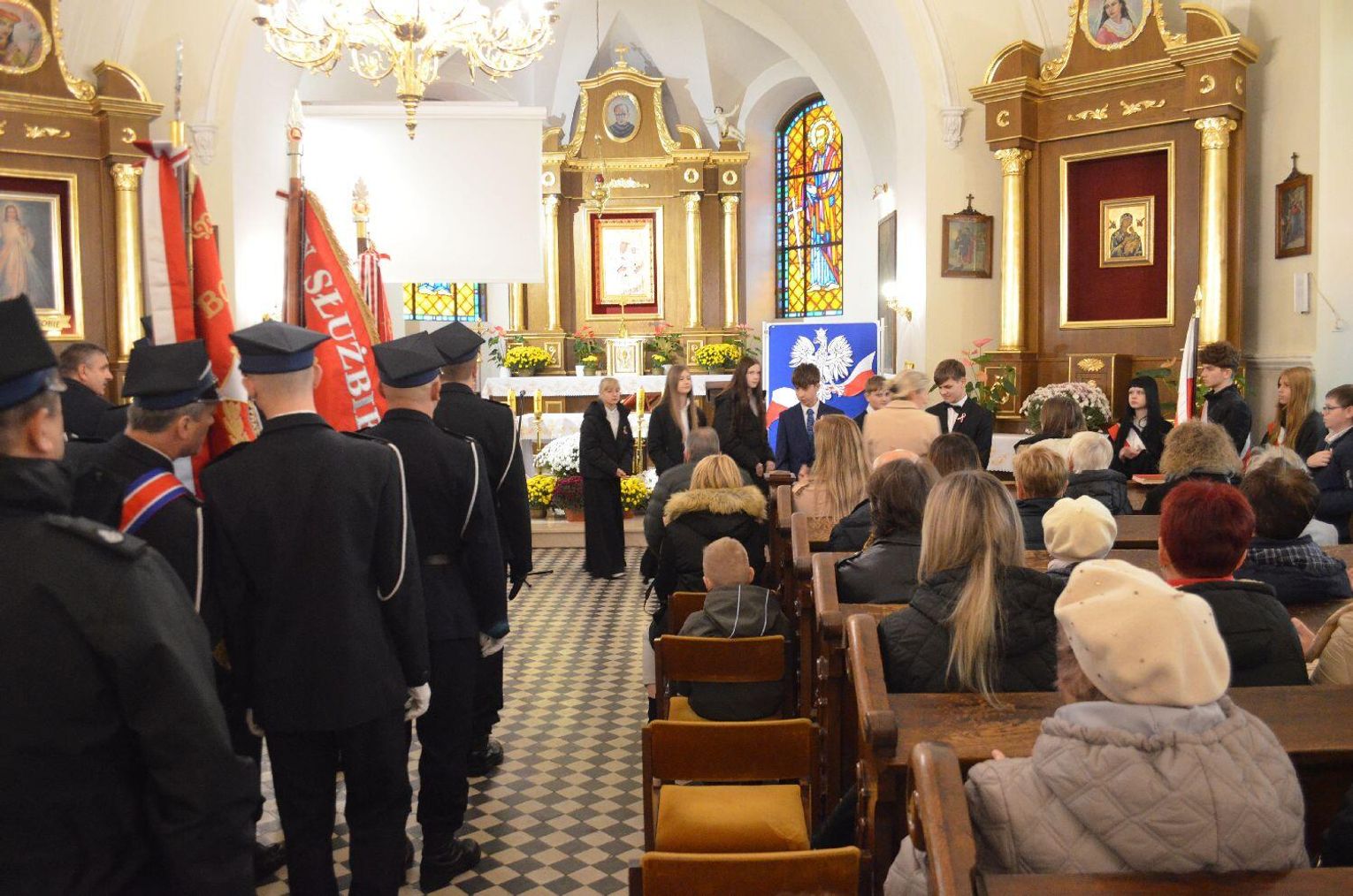 W uroczystościach wzięły udział poczty sztandarowe Ochotniczych Straży Pożarnych, delegacje ze szkół, mieszkańcy gminy i goście.